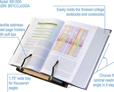 NECK PAIN RELEIF: Our customers report that BS2500 Large Book Stand for reading textbooks provides neck pain relief for students spending long hours hunched over the textbooks.