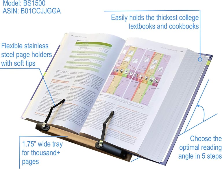 BOOKSTAND FOR COLLEGE TEXTBOOKS - Strong and sturdy, easily holds large college textbooks (Law, Medical , Nursing, Engineering, Business ) of all sizes, and thicknesses.